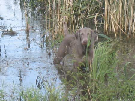 Die Hunde haben sich sehr gut entwickelt. Wir haben einen Teil Gehorsam absolviert, uns von den Vorstehanlagen überzeugt, die Suche und Schußfestigkeit angesehen und im Wasser geübt.