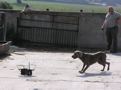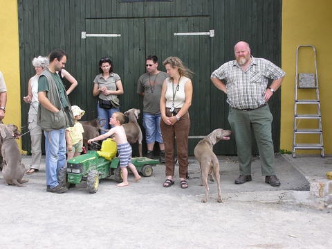 Zusammen mit dem Weimaraner-Züchter Andreas Weising "von der Wartelshöhe", der ebenfalls seinen Weimaraner-Kurzhaar-Zwinger seit 10 Jahren betreibt, haben wir auf seinem Betriebsgelände "Viehhandel Weising" einen großartigen Sonnabend verbracht. Andreas' Zwinger "von der Wartelshöhe" hat seine Zucht auch wesentlich auf Berta vom Forsthaus Gehegemühle aufgebaut, was uns daher nicht nur freundschaftlich, sondern auch züchterisch und blutlinienmäßig miteinander verbindet.