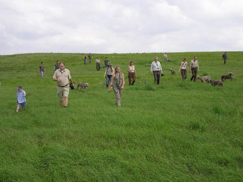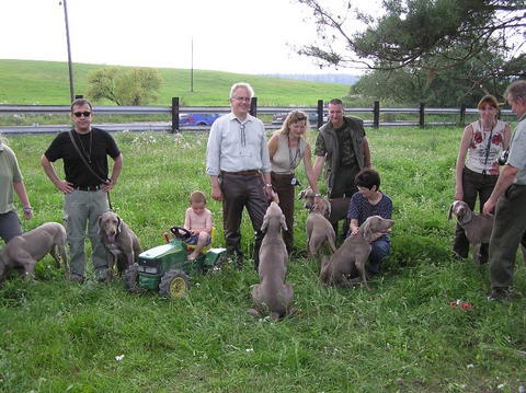 Es war eine großartige Veranstaltung auf der über hundert Gäste mit über fünfzig Weimaranern zusammenkamen! Besonders zu erwähnen sei, daß sich fast alle Weimaraner frei auf dem gezäunten Gelände bewegt haben und es auf diesem keinerlei Streß durch Raufereien oder Beissereien gegeben hat. Nicht einmal die Jagdsignale wurden durch das sonst übliche "Mitjaulen" begleitet. Ein hervorragendens Signal für die Wesensfestigkeit unserer Grauen.