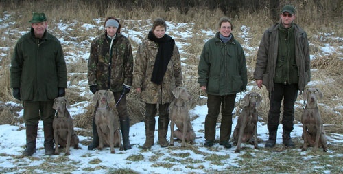 Unsere Übungsgruppe am 17.01.06 v.l.n.r. Felicitas, Frau Holle, Shadow, ein kleiner Gast- Adda vom Wodangrund und Felina.