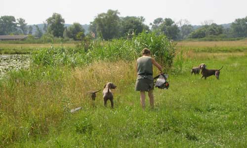Das schwierige Schilf und die Wasserrosen zeigten, daß unsere Hunde noch mehr Erfahrung benötigen, aber sie schlugen sich trotzdem tapfer.