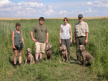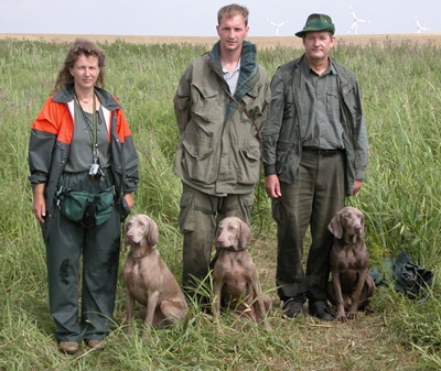 Am 14. Juli fanden sich vier Hunde aus dem F- Wurf ein. Wir nutzten diesen Tag für die Wasserarbeit, Schilf stöbern, Schußfestigkeit und Freiverlorensuchen in Disteln.