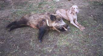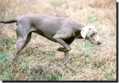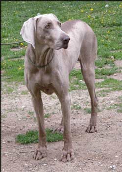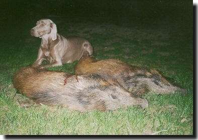 gew.:30.11.1994 gest.: 23.03.2006, ZB.Nr.:9925/95, DGSTB-Nr.:46596,VJP 67 Punkte, HZP 174 Punkte; 288/TF I. Preis, SchwN, HD-B1, HN, Zuchtschau g/sg=sg, rgr, 66cm, Wesenstest-Gegenstand 2. Afra ist ein ausgesprochener Saufinder. Sie ist sehr erfahren am Schwarzwild und jagt mit Verstand. Sie ist ein erfolgreicher Nachsuchenhund auf alles vorkommende Schalenwild. Die Entenjagd bereitet ihr ebenso viel Vergnügen. Da Afra voll bejagt wird, ist sie in der Familie sehr ausgeglichen und mit einer starken Bindung zu dieser. Kindern gegenüber ist sie sehr freundlich. Afra ist außerdem der Kopfhund unserer Weimaraner. Heute zählt sie auch schon zum alten Eisen. Trotzdem braucht sie immer noch die Jagd, um glücklich zu sein.