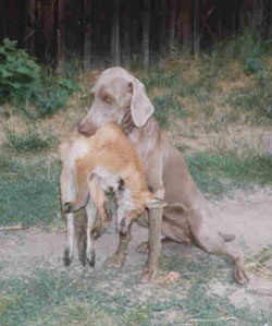 Jagdlich war Aika immer eine Herausforderung gewesen. Vom ersten bis zum letzten Tag. Bedingungslos Wildscharf und bedingungslos eigensinnig - dennoch immer mein Hund. Diese Hündin war - vielleicht gerade wegen ihrer selbst gelebten Schwächen - so unperfekt, daß sie einen immer lehrte, was es bedeutet einen Weimaraner zu besitzen: Einen intelligenten und "freien" Jagdhund, der sein Jagdleben zu einem gemeinsamen Lebensabschnitt macht, ohne sich selbst gänzlich aufzugeben. Zeitweise fühlte man sich schon als Raubtierdompteur.