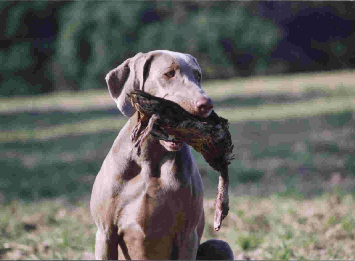 Cayenne vom Forsthaus Gehegemühle gew. 09.05.1998 gest. 24.04.2013 ZB.Nr.420/98 DGSTB-Nr.: 48737 VJP 67 Punkte (Hasenspur 11) und 66 Punkte, HZP 182 Punkte (Vorstehen 11, Suchensieger), VGP 271/TF II. Preis (mit 16 Monaten),SchwN (Schweiß-Natur), HD-A2, Zuchtschau: v/sg=v (Zuchtschausiegerin der Landesgruppen Schleswig Holstein und Niedersachsen 1999), rgr, 64cm, Wesenstest-Gegenstand:4 Cayenne war enorm leistungsstark und führig. Cayenne zeigte eine hervorragende Nase mit ausgesprochenem Finderwillen. Im Vorstehen bekam sie eine 11, da sie mehrfach am Niederwild durchstand und abgenommen werden konnte. Sie zeigte uns schon sehr jung eine natürliche Schärfe am Schwarzwild. Auch bei unseren Entenjagden arbeitete sie mit viel Durchhaltewillen; das Wasser war ihr Element. Cayenne iwar neben ihrer Tätigkeit als Jagdhund, ein verschmuster Familienhund. Sie hat drei Würfe mit insgesamt 20 Welpen großgezogen.