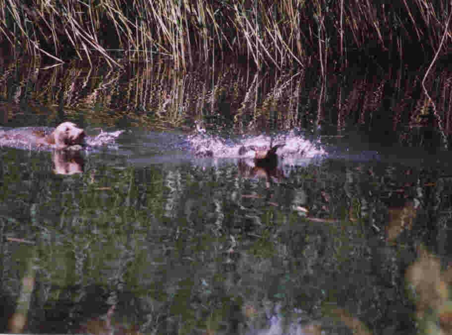 Cayenne v FG 10.05.1998-24.04.2013 Vom ersten bis zum letzten Atemzug - war unsere geliebte Cayenne bei uns. Sie war die Große aus dem C-Wurf und hat ihr ganzes Leben mit und bei uns verbracht. Cayenne war immer und zu jedem Menschen sehr liebenswert. Jeden himmelte sie an, also wollte sie sagen "...kauf mich". So wurde sie auch von einem befreundeten Paar oft als "Kaufmich" gerufen ;-). Cayenne durfte fast 15 Jahre auf dieser Welt sein und nicht immer gab es nur Sonnenseiten. Cayenne war ein super Jagdhund mit hervorragenden Vorstehleistungen und Arbeiten auf Schweiß. Mit ihr hat das Buschieren so viel Freude gemacht und im Wasser war sie ein Traum. Auch wenn sie einen hier manchmal, dank ihres ausgesprochenen Willens zur Weissglut bringen konnte, weil sie einfach nicht rauskam, bis das letzte Stück vom Wasser war. Es gibt so viele schöne Erinnerungen an sie. Auch die 3 wundervollen Würfe vom D-, E- und F-Wurf hat sie als meisterhafte Mutter großgezogen. Sie war eine sehr liebe und fürsorgliche Mutter mit allen Instinkten die man sich als Züchter vorstellen kann. Wir waren immer Dankbar für ihre fröhliche Gesellschaft und lange haben wir ihre Gebrechlichkeit hingenommen. Doch leider war jetzt die Zeit gekommen. Wir haben unser Versprechen eingelöst, nun darf sie mit den anderen vor ihr gegangen Schätzen hinter dem Regenbogen tüchtig jagen. Vielen Dank das es Dich gab!!! Gute Reise geliebtes Mädchen.