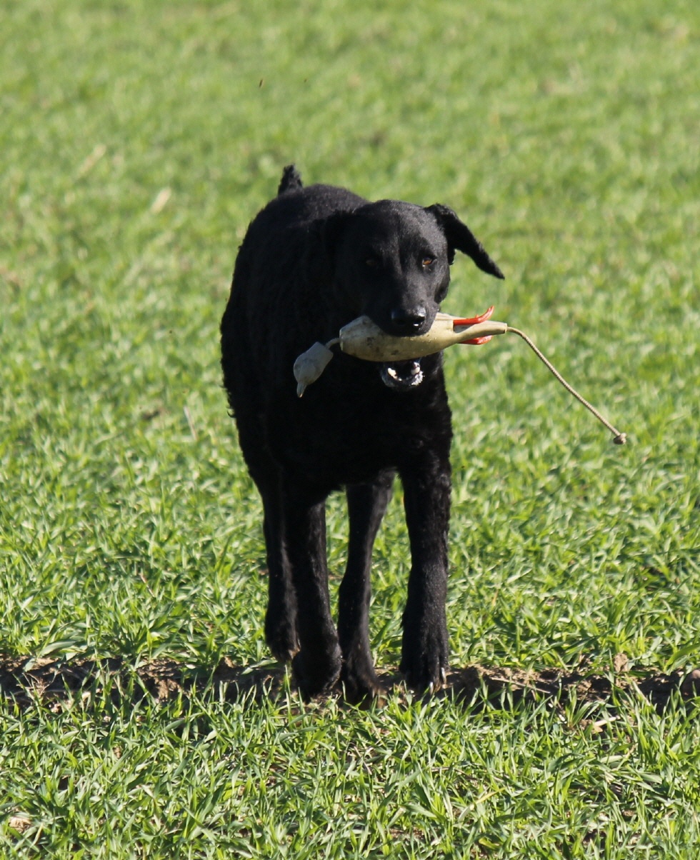 Hinzugekommen sind unsere beiden Nachzuchthündinnen aus unserem ersten Curlywurf, Waterfowlhunters Annemarie und Waterfowlhunters Annabella.